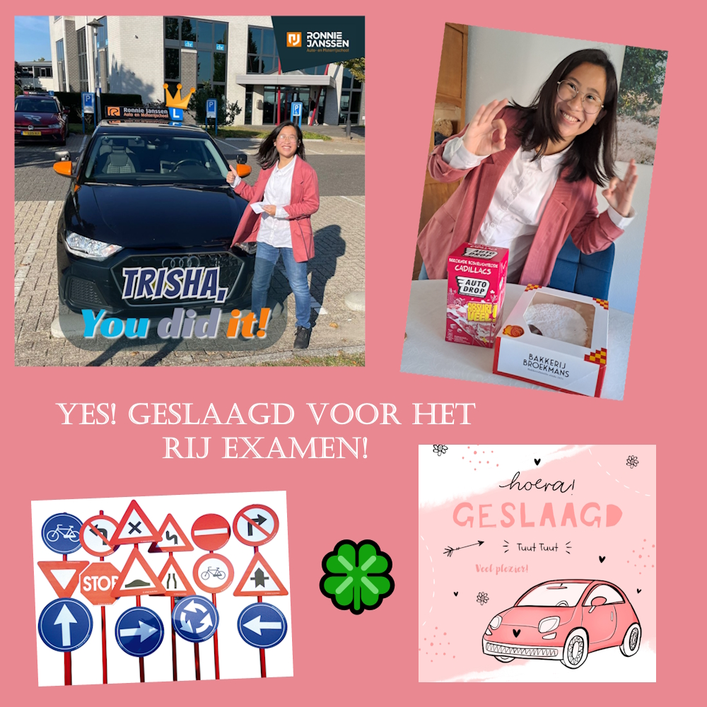 YES! You did it! Wat een mijlpaal, van harte gefeliciteerd lieve Trisha met het behalen van je rijbewijs 🍀 Je mag officieel gas geven, super goed gedaan! Veilig rijden en genieten! ❤️